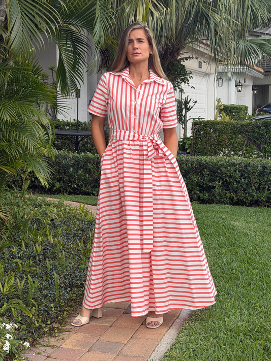Coral Stripe Shirt Maxi Dress