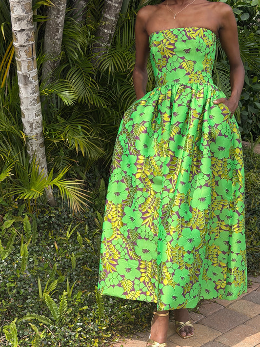 Galia Strapless Green Brocade Gown
